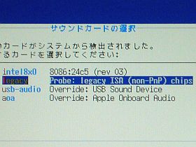 ところで、面白い事に、一旦legacy _non-PnP_で試行した後、再度default intel8x0 _8686:24c5 rev03_に戻した状態でもサウンドが鳴っているので、益々わけが分からなくなりました。