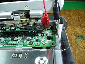 クリップ・コードを使って、別電源で19Vを供給してみると、電源は入るようです。_左写真_