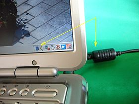 上記の処置で、再び動作開始しました...が、仮電源から通常使用のACアダプタに替えて電源を入れたら、あれ?バッテリ動作になってますよ?_左写真_