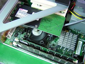 位置的には、上方にモデム・ボードがあり、ファンをそのカバーに取り付ければ良い!電源の取り出しも楽。_左写真&<クリック>_