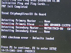 HDDを載せた時、ジャンパが「CS」だったようで、「プライマリ・スレーブ」になっていました。