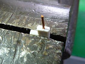 で、1mmφのドリル刃で穴開け。_左写真&<クリック>_