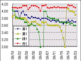 左グラフ上は先回からの継続データですが、これから、黄1、緑1、青1はどんどん自然/自己放電が進んでいる様子が分かります。