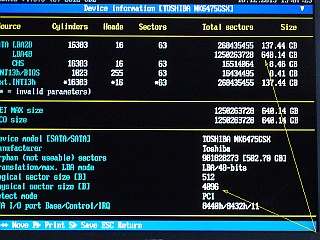 外装に表示された最大容量と、実容量とが異なっていて、改造して容量増大が図れたHDDもあるので、このジャンクHDDにもその可能性を期待したのだが...