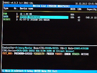 しかも、“PASSWORD+LOCKED”や“SMART ERROR”などが表示されていて、それが“致命的なのかどうか”も分からないので、只管、弄くるだけの状況。