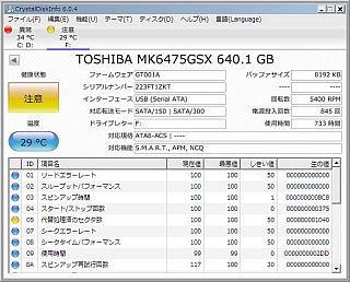 まず、初っ端に、「CrystalDiskInfo」で「SMART情報」を並べてみたら、640GBは「注意」、750GBは「異常」と出る。(左図&<クリック>)