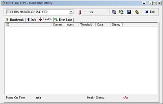 奇妙なことに、“健康状態”に関して、「CrystalDiskInfo」では「SMART情報」が得られたのに、「HD Tune」では、白紙が返されて来た!?(左図&<クリック>)