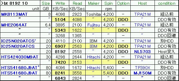 (例外は、Fujitsu MHE2064AT 6.4GBで、Read速度で弱転?していました)
