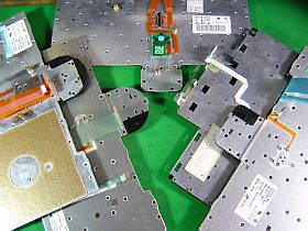 普通なら、あまりキーボードを外す事はないと思いますが、外して保存しておこうとする場合、か弱いフレキ部には結構気を遣います。(左写真<クリック>で、種々のキーボードの裏側)