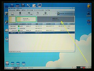 これをこのまま、領域拡張出来ないかと、Puppy LinuxのGpartedなどで眺めたけど、手立て無し!