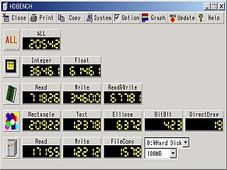 この上で、HDBENCHを走らせたら、ALL値は20Kでしたが、少し物足りない。(左図)