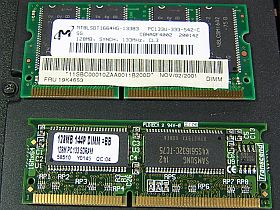 今まで、128MBメモリ・モジュールは、8チップ構成のものを見慣れていたせいで、“4チップ構成なら64MB”と思い込んでいました。(ふーん、こんなのもあるんですねぇ...ま、これらは、そのまま使いましょう)