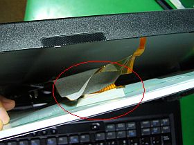 で、左/上写真<クリック>は、一度やったけど、信号コネクタが抜けてしまって、失敗したところ。(バックライトだけが、虚しく明るい!@.@;)