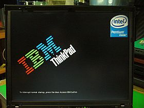 LCD(液晶パネル)の輝線不良があったので、一旦放り出していたのですが、へろへろさんから頂いたThinkPad R50eのLCDパネルを流用して、正常で明るいものに出来たので、改めてこのThinkPad R51をサブ機にしました。左写真。感謝!<(_"_)>
