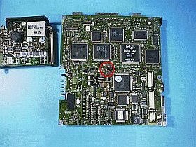 加工箇所は、メイン基板のちょうど中央。(手前が、通常使用時の手前)