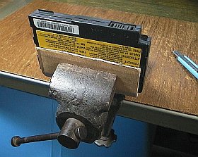 バッテリ・ケースの殻割りは、普通、内部のセルに強いショックや変形を与えないようにカッターナイフなどで(静かに?)行うべきらしいです。