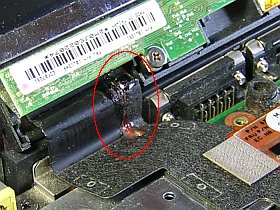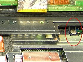 (先回の自分の記事を見直せば直ぐ分かったのですが、)上蓋を開けるのに先ず、キーボードを外せばいいものを、忘れていて奥の蓋を懸命に抉じ開けようとしていました。(バカですねぇ...後で見たら、どうしても外せなかった箇所は、中でちゃんとビス留めされていましたから。f(+o+;)(写真の右側、赤楕円印の所)