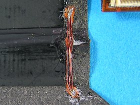 今回は、半田付けに苦戦。1本付けたらその隣の線が外れ、付け直したらまた隣、さらに今付けた線も外れ出しての、いたちごっこ。(左写真、<クリック>で、先回の接続状態の写真)
