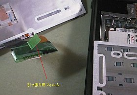 他方、旧不良品の方には、コネクタの引き抜き用フィルムが付いていました。"どうです!これならコネクタが引っこ抜き易いでしょ?"てな具合。