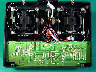 無線回路の方は、今は触るつもりが無いので、水晶発振子(Xtal)を外し、アンテナ(ANT)を抜いて、電波が出ないようにした。(左写真)