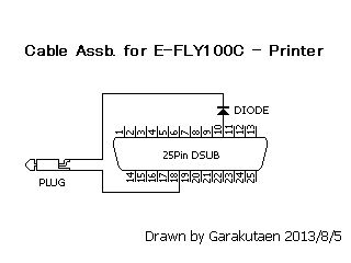これに必要だった「仲介ケーブル」は、「オーディオ用モノ・プラグ」と「25pinプリンタ・コネクタ」とで、比較的容易に製作出来ました。(左写真<クリック>)