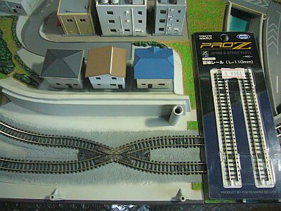 次に、大阪・日本橋で、それらしい“ロクハン(Zゲージ用)道床無し直線レール”(¥808税込み)を買ってみたが、接合部が大きく異なるので、これも“差し替え”に使えなかった。
