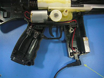 モーター(RE-280RA相当)の交換と、ギヤの接着、専用グリスの追加、(ACアダプタを使った)DC電源(5V,2A)使用で、何とか動かせる/撃てるようになった。(動画1<クリック>)