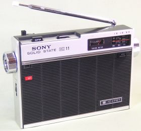 並んでいた3台の内、デザインがシンプルで小型で一番安かったSONY製のICF-110。(\1,500一切負からん値ぇ!)