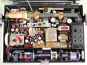 (どうも、こうした市での廃Trラジオの値段は、ツマミが沢山でダイアルや刻印の多い、外見が派手々々、筐体が大きいタイプほど値が高いみたい。う〜ん、そんなもんかぁ?)