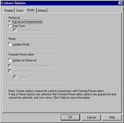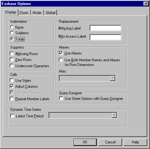 For information about each option in the Essbase Options dialog box, see the Essbase Spreadsheet Add-in online help.