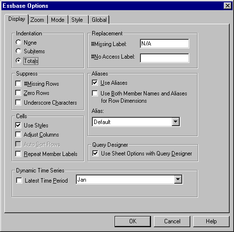 For information on each option in the Essbase Options dialog box, see the Essbase Spreadsheet Add-in online help.