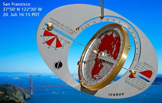 The Icarus offers an explicit world map, making it easier to set for latitude and time zone correction. It also has an explicit equation of time adjustment to help accuracy. Something my own universal ring does not have. The Icarus is also expensive, even though it does come unlocked, and may be used worldwide without roaming charges (the web site doesn't mention what the cost would be with a 2 year plan with AT&T).