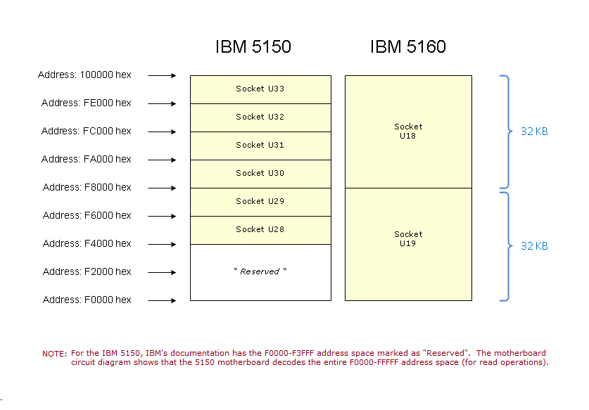 5160 000 - 0FF hex 100 - 3FF hex  Reference: The IBM 5160 document here