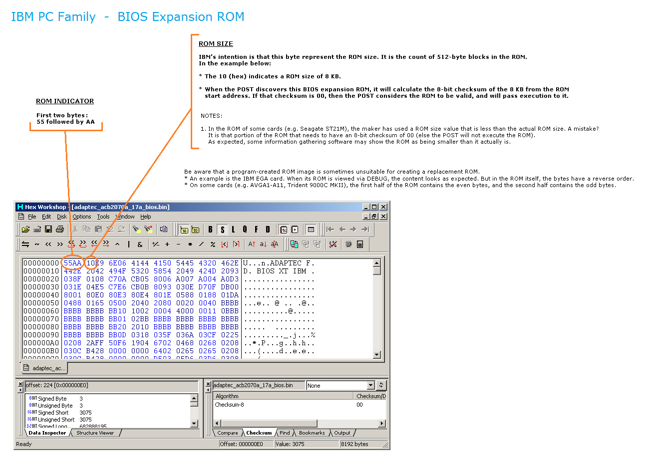 If the 5170's power-on self test (POST) does not see an 8-bit checksum of 00 for the entire 64 KB, the POST will ignore the BIOS expansion ROM code.