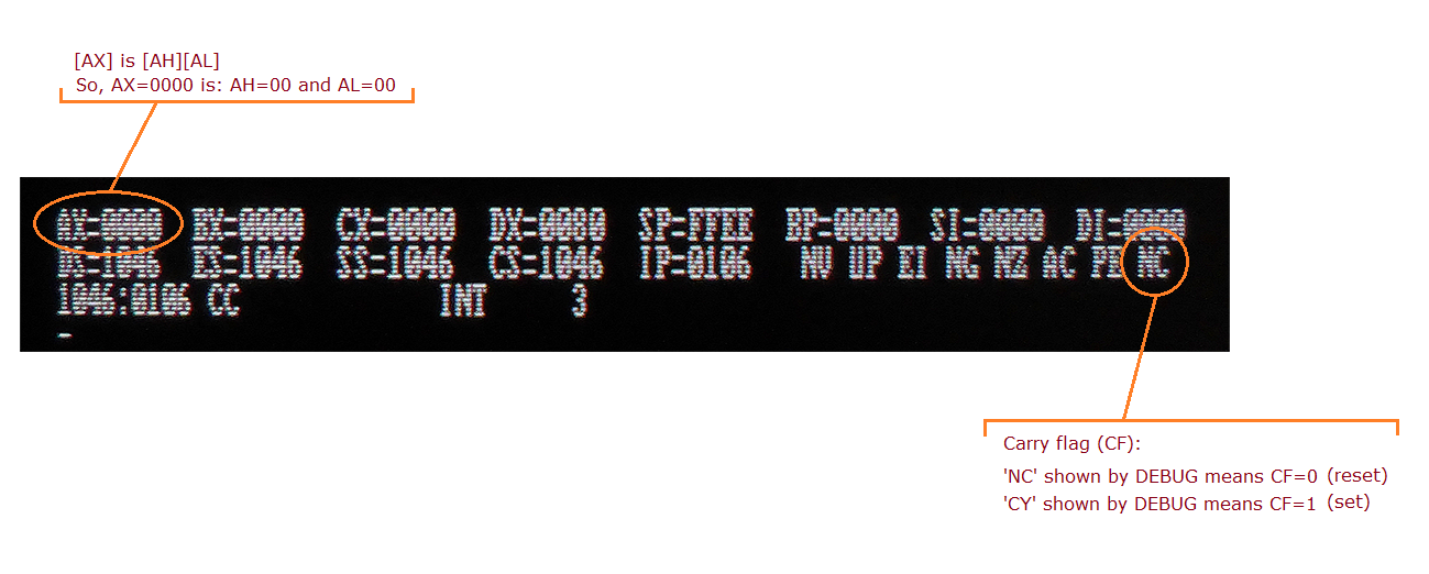 Below, I show the segment as 'xxxx'.  That is because the segment that DEBUG.COM uses varies.  If I was to show the segment that I saw, some people would worry because the segment displayed to them was different.