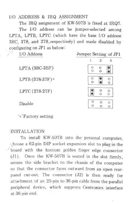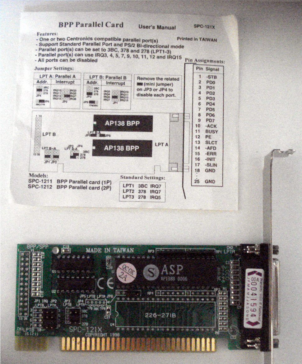SPC-121X - User's Manual       (parallel port card for AT)  (SPC-121X = SPC-1211 or SPC-1212)