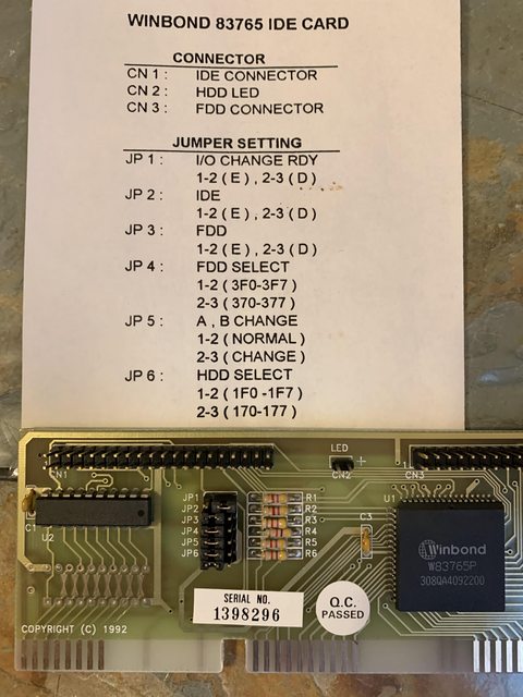 83765 IDE card - User's Manual (16-bit hdd/floppy card) (source: phonophan at the VCFF)