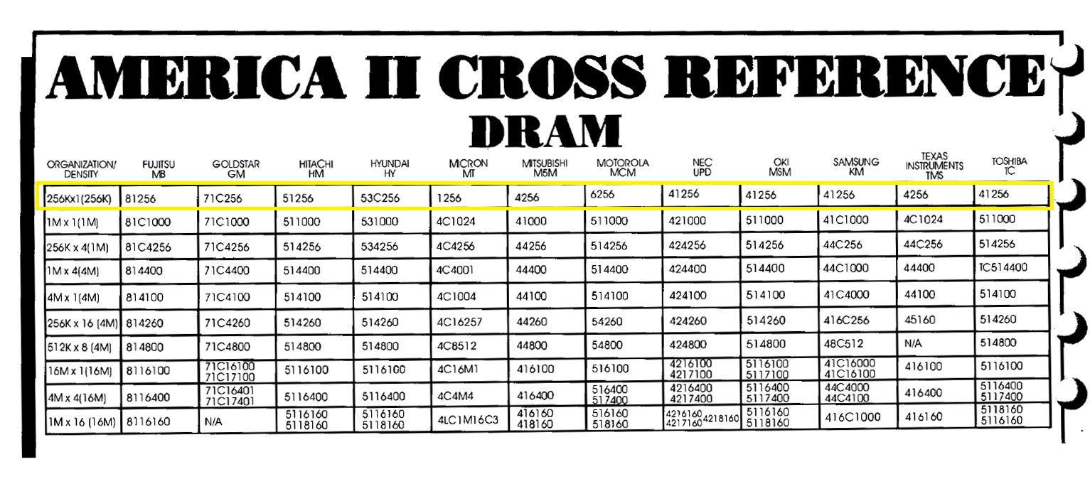 Micron MT1256-12 120 ns NMOS 256cycle/4ms     41256 list 3 41256 list 4
