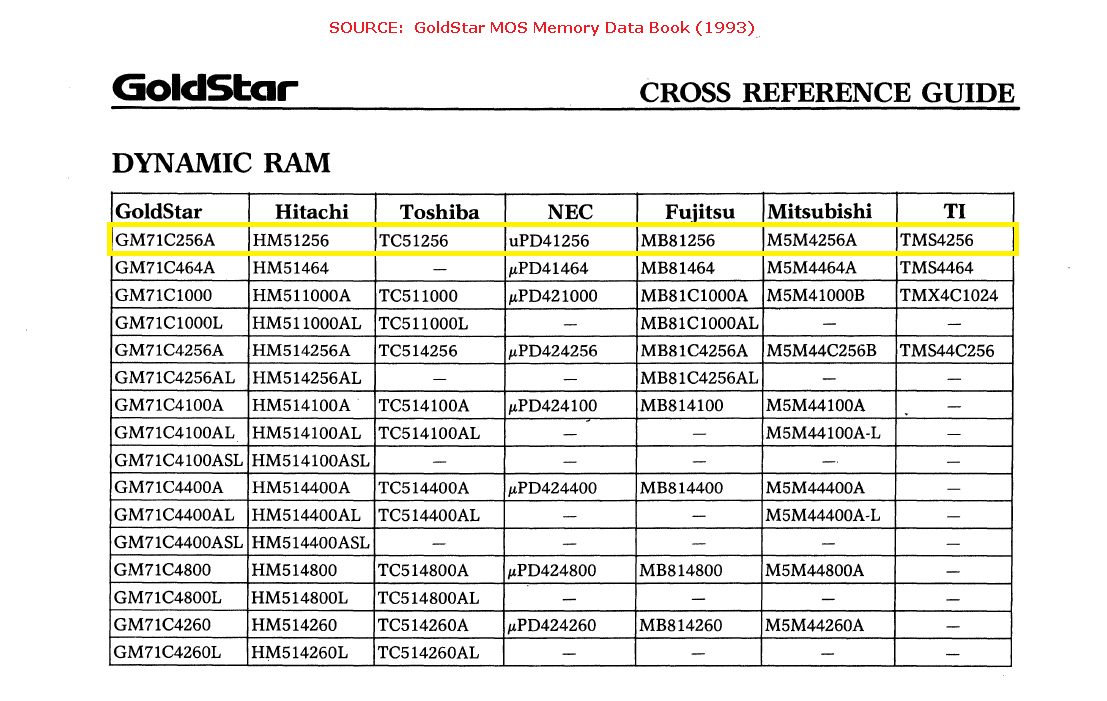 GoldStar GM71C256A-80 80 ns CMOS 256cycle/4ms       41256 list 4 41256 list 5 datasheet Datasheet contains "All inputs and output TTL compatible"