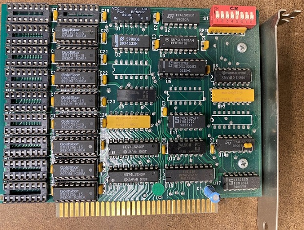 Sanyo LM33256G-12 120 ns NMOS ? photo           Photo of Commodore PC 20-III motherboard