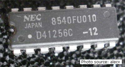 NEC µPD41256C-12 120 ns NMOS 256cycle/4ms photo 41256 list 1   41256 list 4 41256 list 5 datasheet As shown in photo, the prefix of "µP" is not printed.
