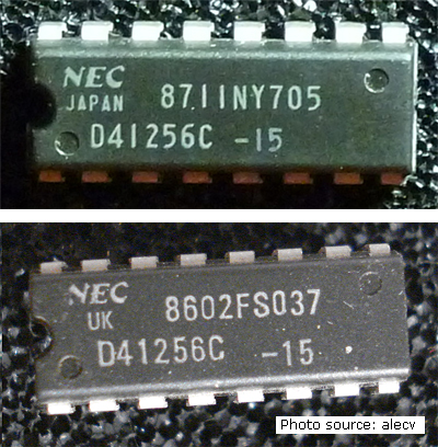 Japanese makers tend not to print prefixes on ICs and transistors.  In photos below, it is seen that at least NEC and Oki are in that category for the 41256.