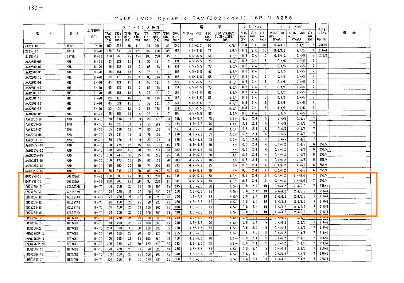 Hitachi     HM51256P-8 85 ns CMOS 256cycle/4ms photo   41256 list 4 41256 list 5 41256 list 6 datasheet Datasheet contains "Input and output: TTL compatible"