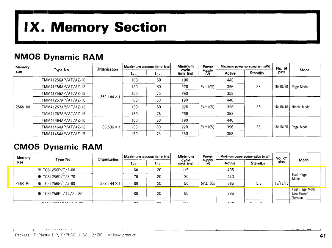 Toshiba TC51256P-60 60 ns CMOS 256cycle/4ms     41256 list 3   41256 list 5 datasheet Probably TTL compatible