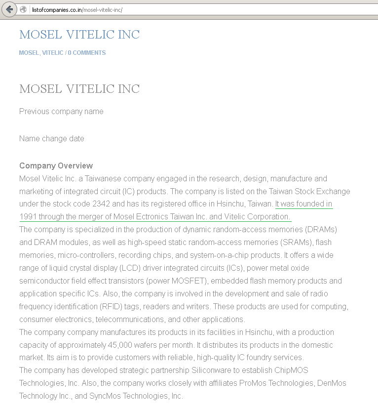 Mosel MS51256-10 100 ns ? 256cycle/4ms     41256 list 3       In 1991, Mosel and Vitelic merged to form Mosel Vitelic Inc.