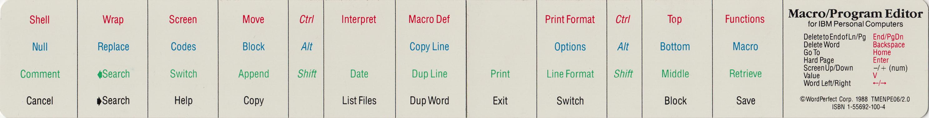 | WordPerfect 4.2 - keyboard template - top | (1987) |