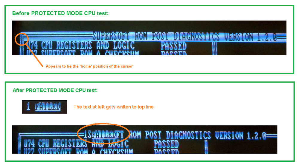 On my fully functional IBM 5170 motherboards, the  PROTECTED MODE CPU  test does something odd.  Three things happen: