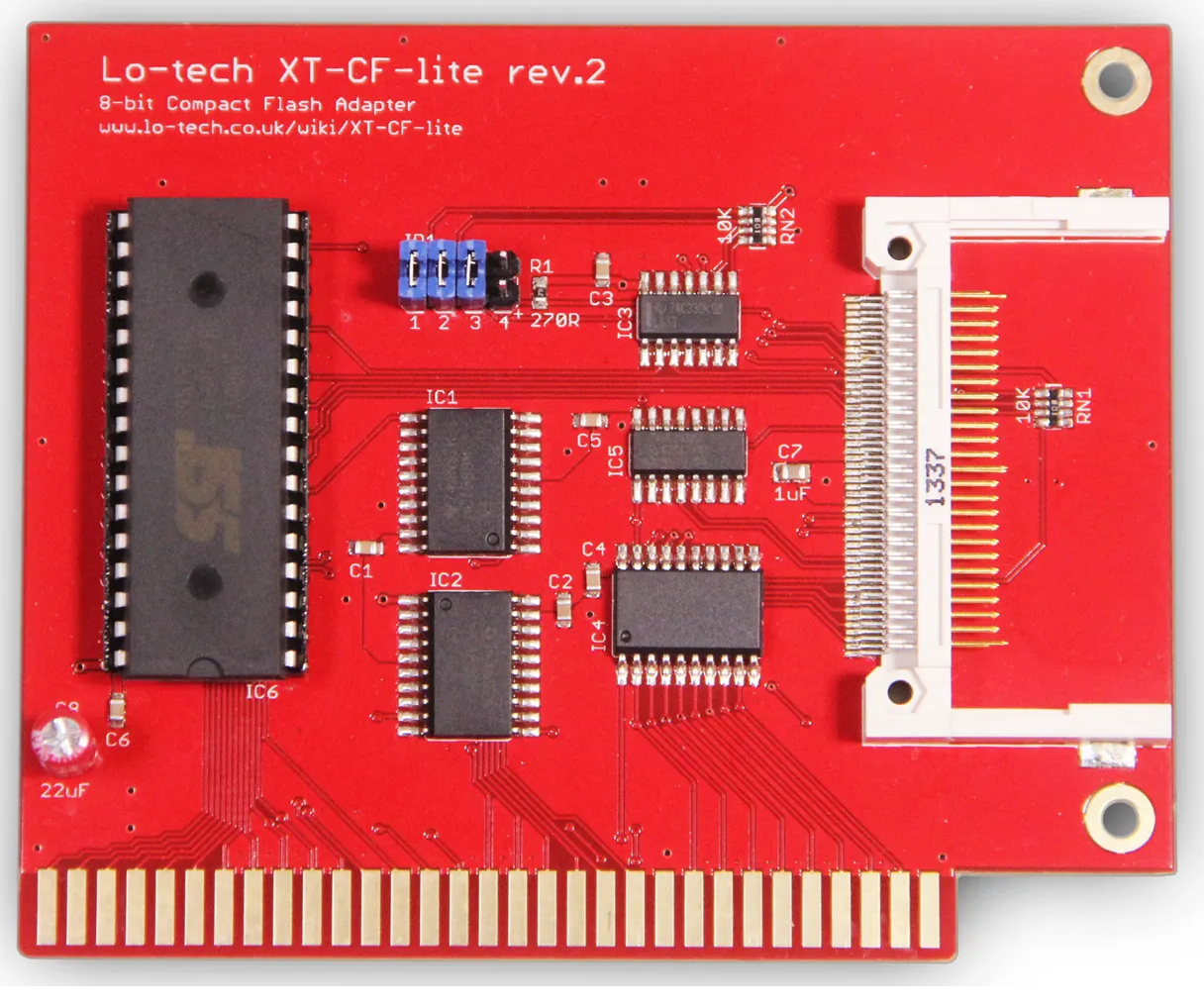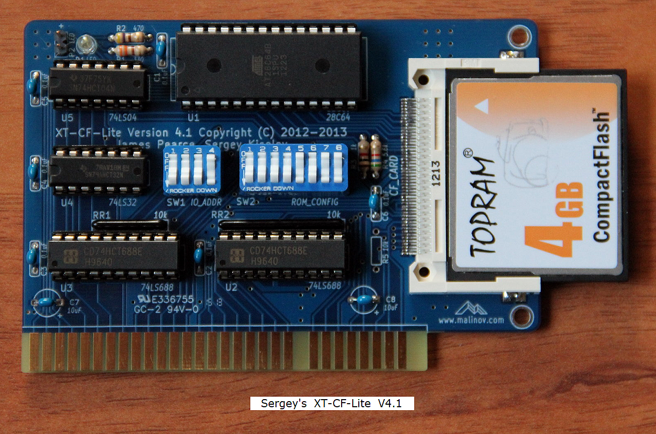 Click on photo for larger view. This is simply a rebranding of the 'Monotech XT-CF-Mini Rev 1.1'. Click here for back. Like for the 'Monotech XT-CF-Mini Rev 1.1', this card requires a CF card that works in 8-bit mode - the vast majority do, but not all. |