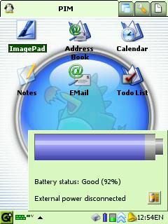 • Now displaying percentage of remaining battery power. Note that on current Sharp ROM battery percentage display in not accurate. We'll soon release (as a part of Cacko ROM project) an updated kernel with APM patches from OZ, which will enable display of accurate battery power percentage.