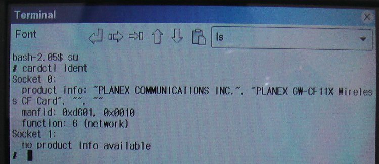 How to use Buffalo wli2-cf-s11 WiFi card with SL-C700 / SL-C750 / SL-C760 (tested with SL-C700, will test with others asap) I got most of this tip from here In Terminal type cardctl ident with the Buffalo wli2-cf-s11 WiFi card in the slot. (I guess this will work with any WiFi card with a PRISIM chipset). Note the output, then edit the wlan-ng.conf file in /etc/pcmcia so that it looks like the following:(if you make it look exactly like this it should work). you could also follow the great guide here in "terminal" here are some useful commands: - type "i" (insert mode) (press "cancel" key for command mode, "x" delete under cursor). - save the file (press "cancel" key for command mode, then type ":wq" )